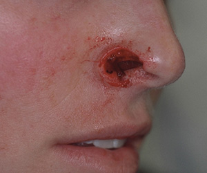 - Nasal defect resulting from trauma or cancer